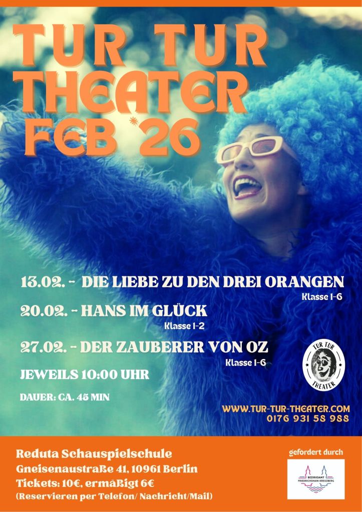 Neue Termine und neuer Spielort! Überwiegend Freitags um 10Uhr im Bergmannkiez in der Reduta Schauspielschule.
